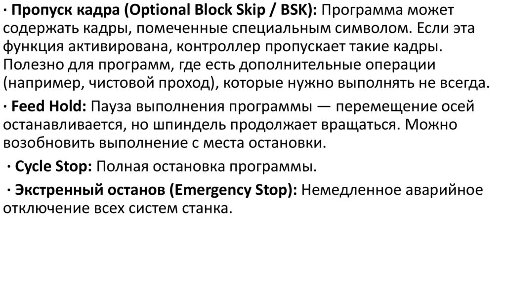 · Пропуск кадра (Optional Block Skip / BSK): Программа можетсодержать кадры, помеченные специальным символом. Если эта