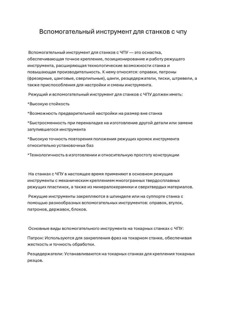 Вспомогательный инструмент для станков с чпуВспомогательный инструмент для станков с ЧПУ — это оснастка,