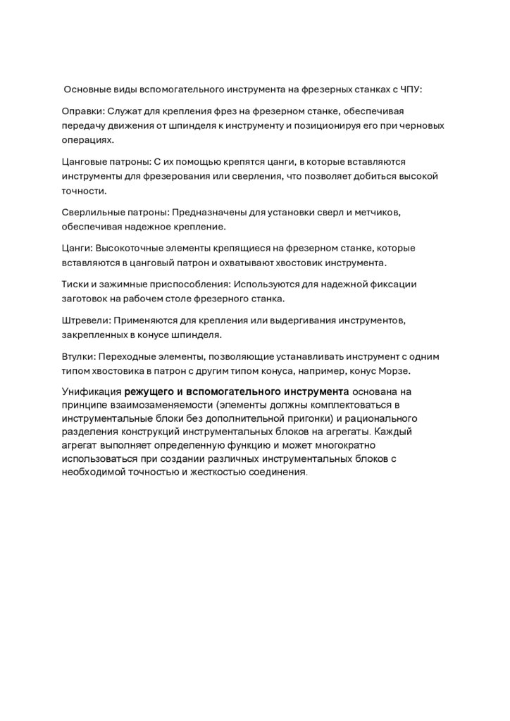 Режущий и вспомогательный инструмент для станков с ЧПУ должен иметь: