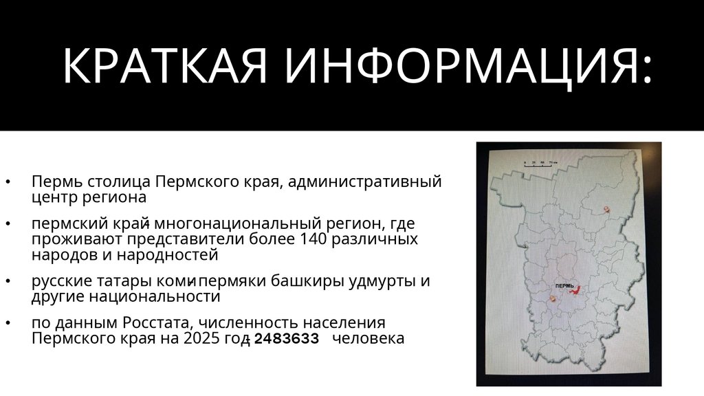 КРАТКАЯ ИНФОРМАЦИЯ:Пермь столица Пермского края, административный
