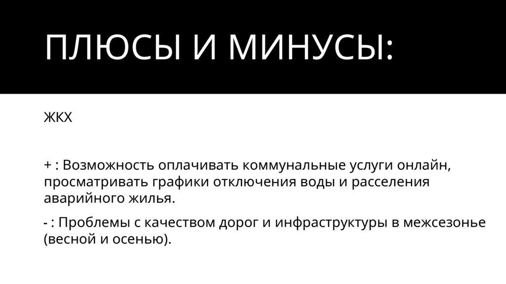ПЛЮСЫ И МИНУСЫ:ЖКХ