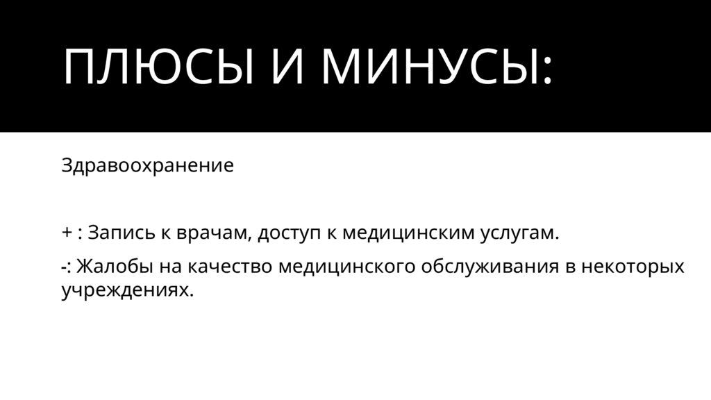 ПЛЮСЫ И МИНУСЫ:Здравоохранение