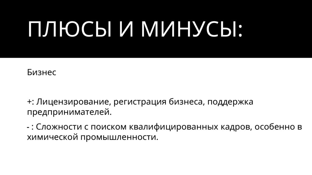 ПЛЮСЫ И МИНУСЫ:Бизнес