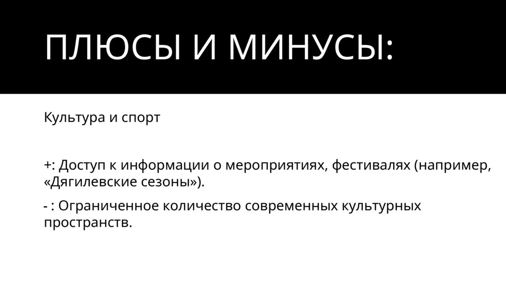 ПЛЮСЫ И МИНУСЫ:Культура и спорт
