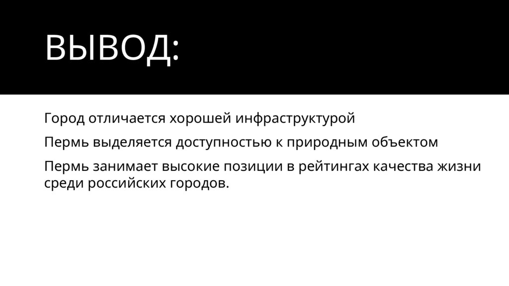 ВЫВОД:Город отличается хорошей инфраструктурой