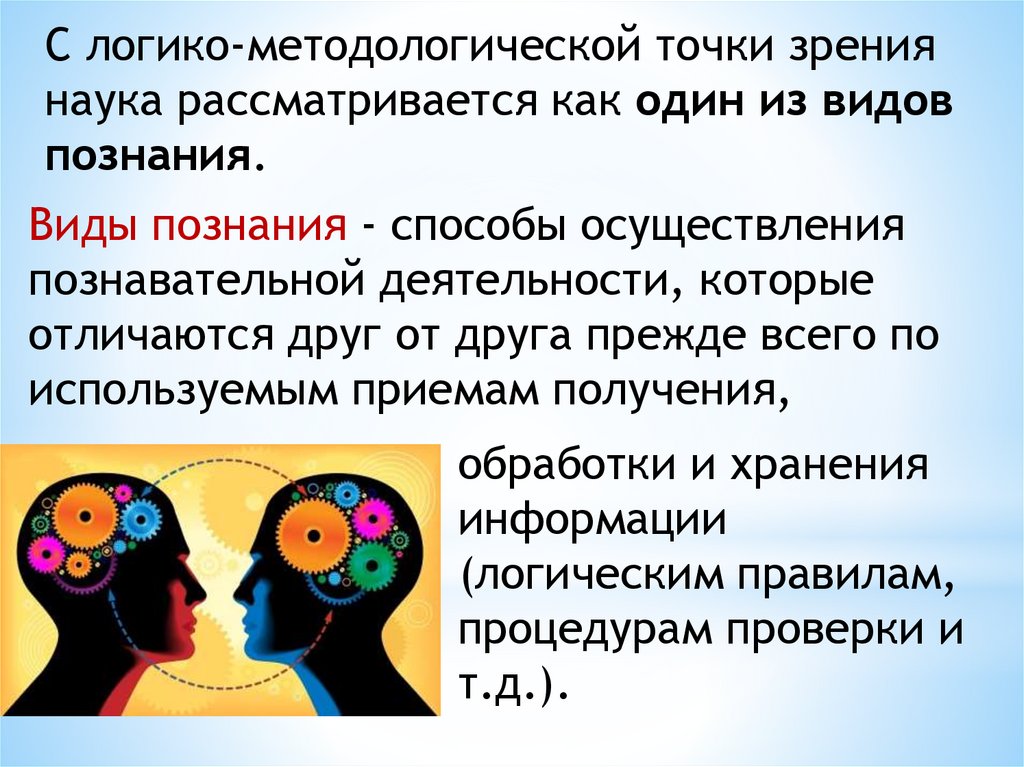 С логико-методологической точки зрениянаука рассматривается как один из видов