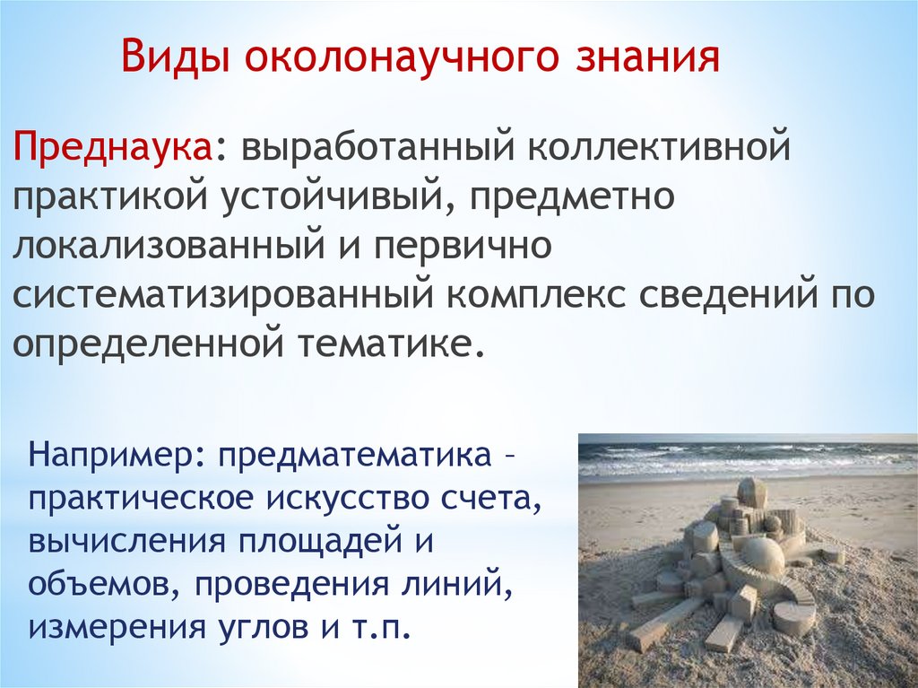 Виды околонаучного знанияПреднаука: выработанный коллективной