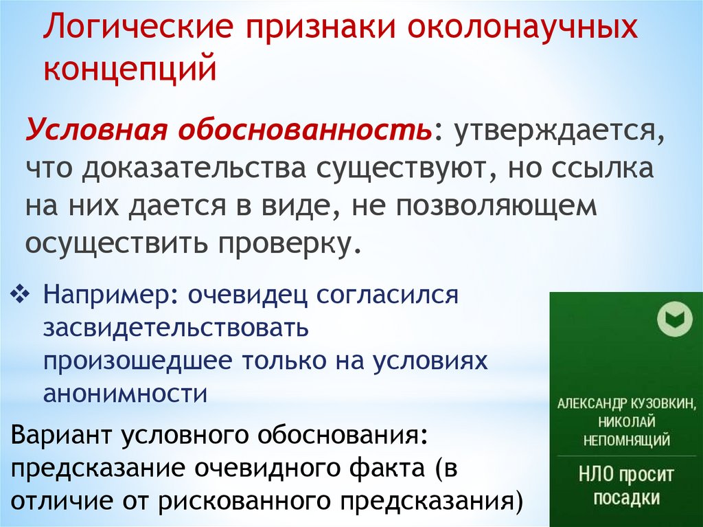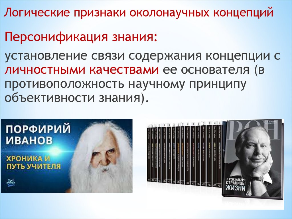 Логические признаки околонаучных концепцийПерсонификация знания: