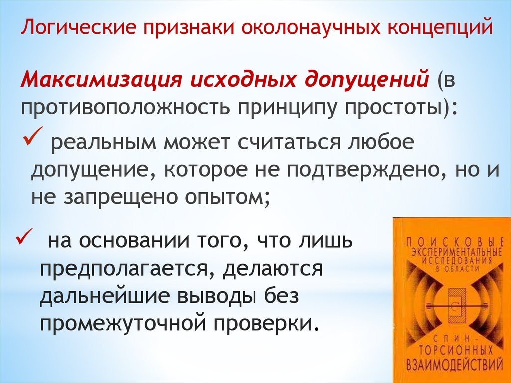Логические признаки околонаучных концепцийМаксимизация исходных допущений (в