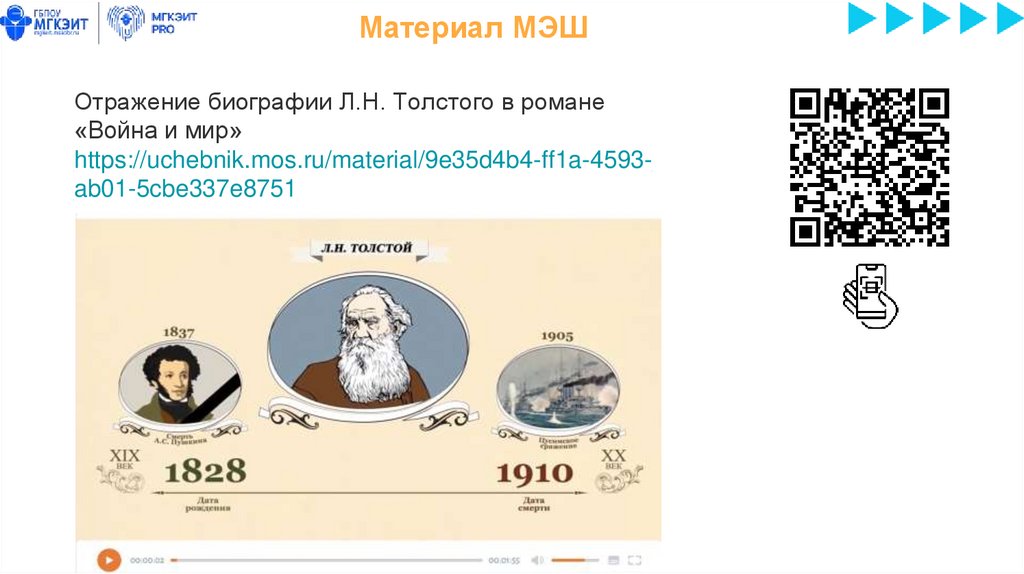 Материал МЭШОтражение биографии Л.Н. Толстого в романе