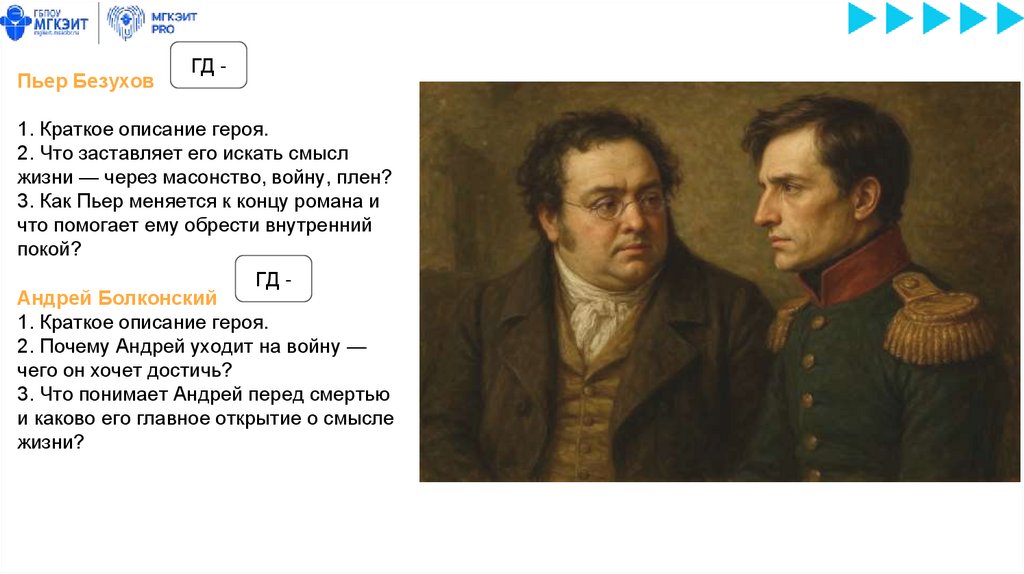 ИИ портреты Андрея Болконского и Пьера Безухова