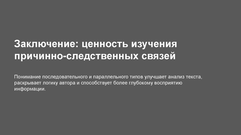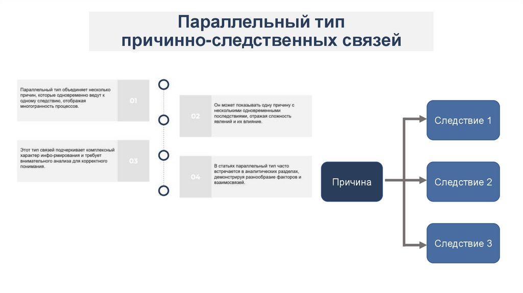 Причинно-следственные связиФундаментальная логика в тексте: последовательный и параллельный типы связей.