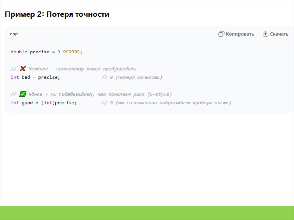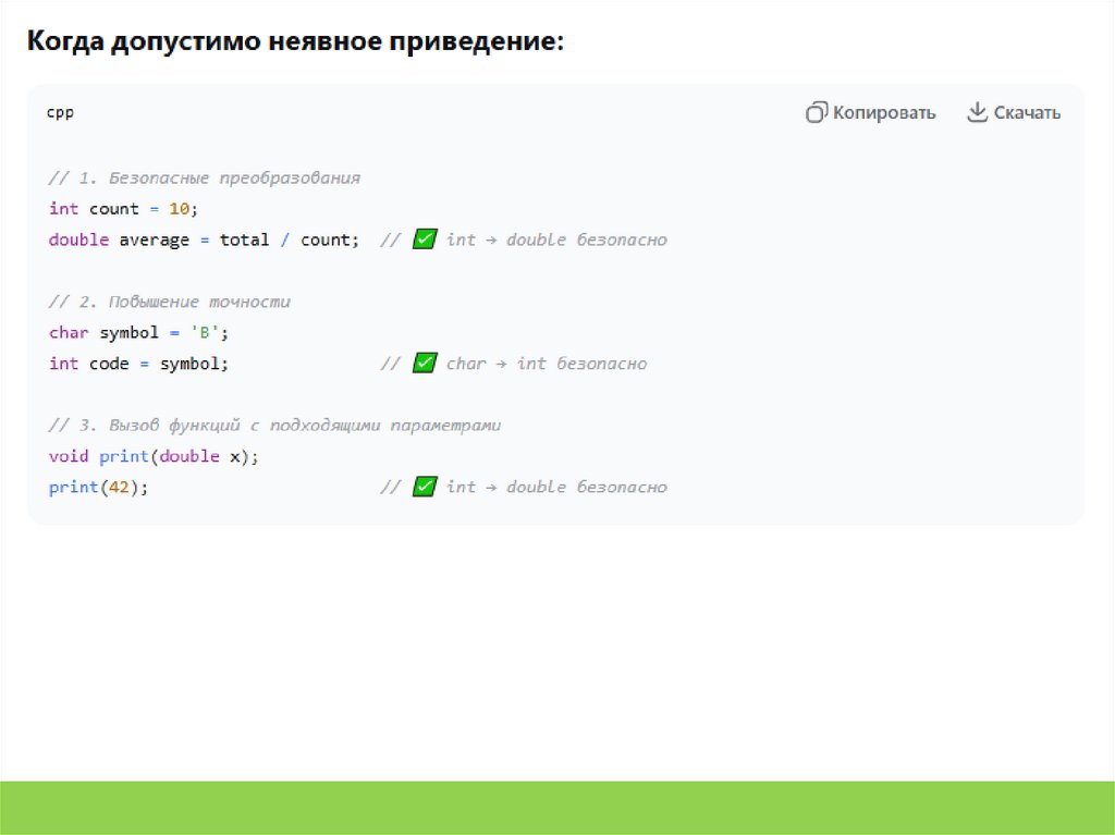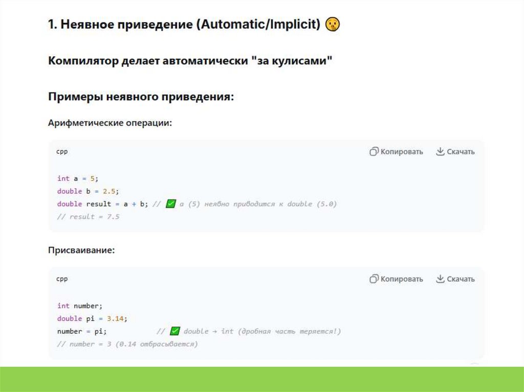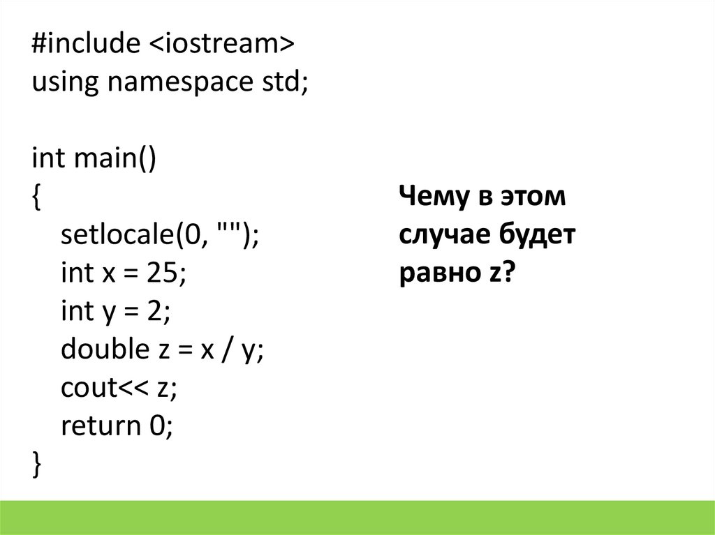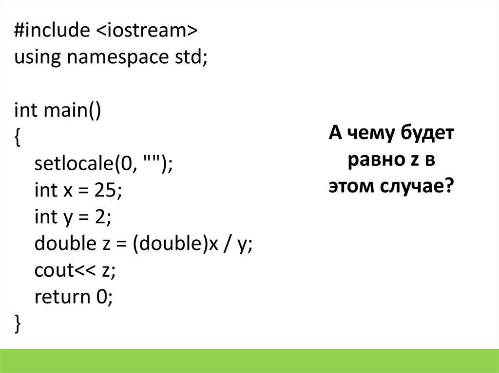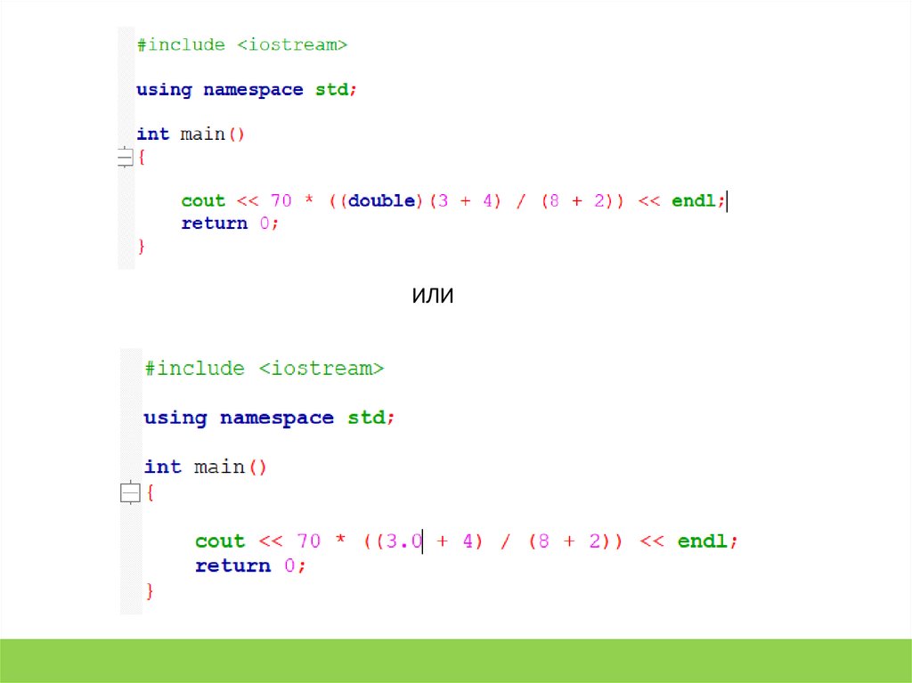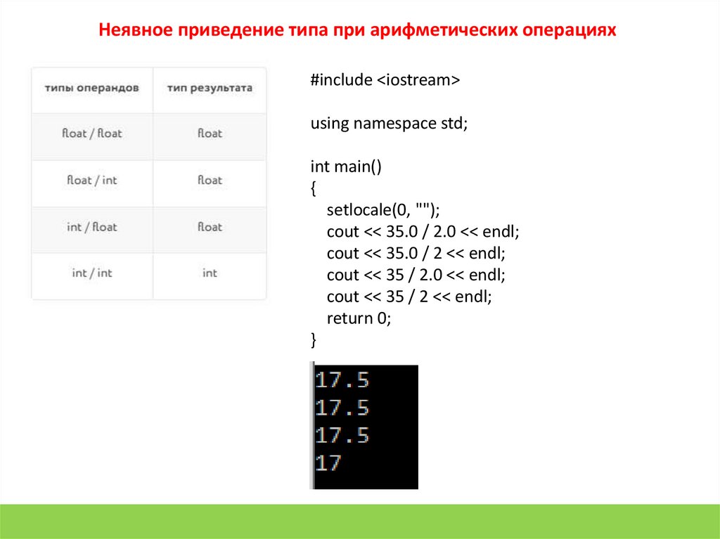 Неявное приведение типа при арифметических операциях#include <iostream>