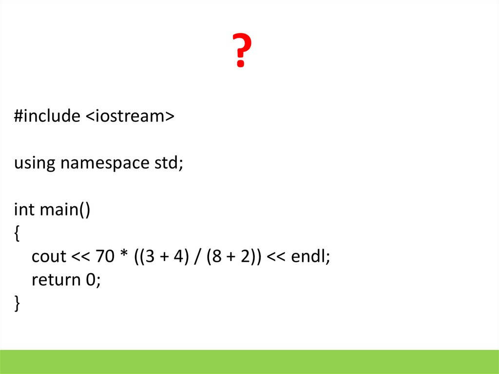 cout << 70 * ((3 + 4) / (8 + 2)) << endl;