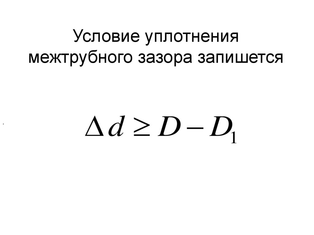 Условие уплотнениямежтрубного зазора запишется
