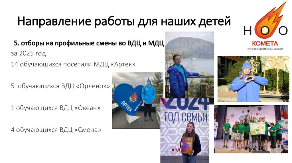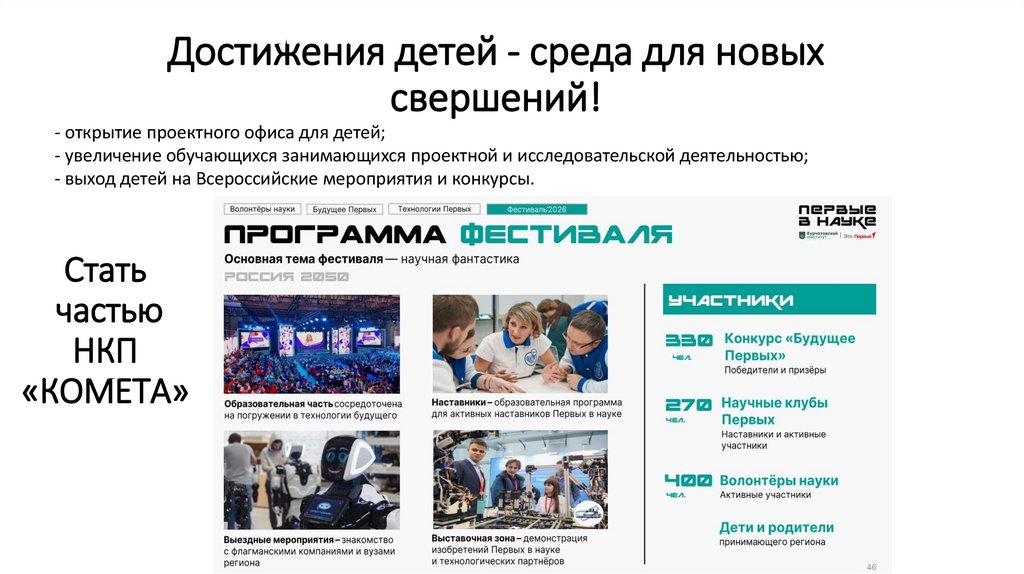 - выход детей на Всероссийские мероприятия и конкурсы.