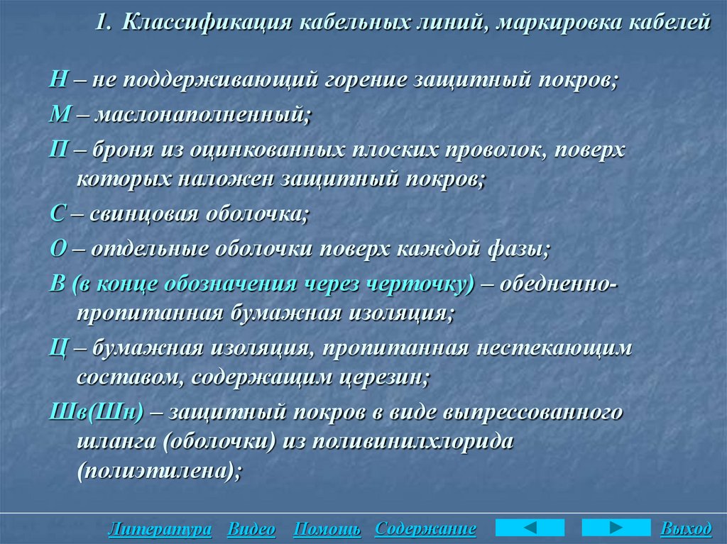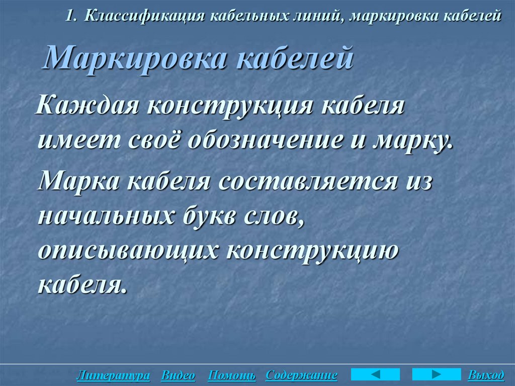 1. Классификация кабельных линий, маркировка кабелейКлассификация кабелей