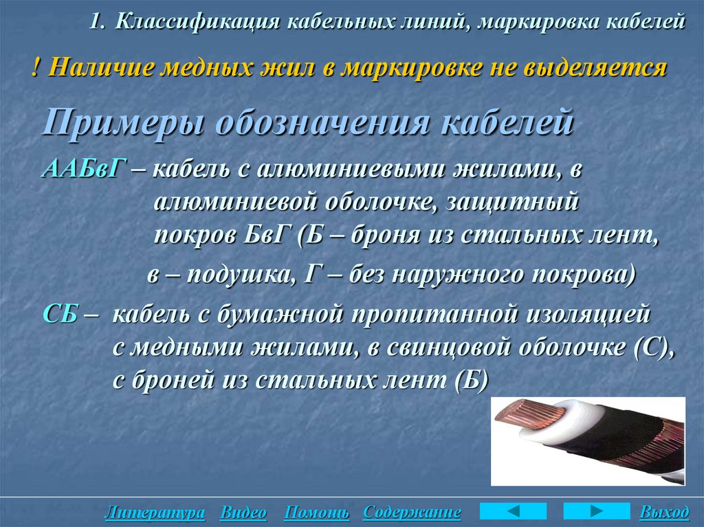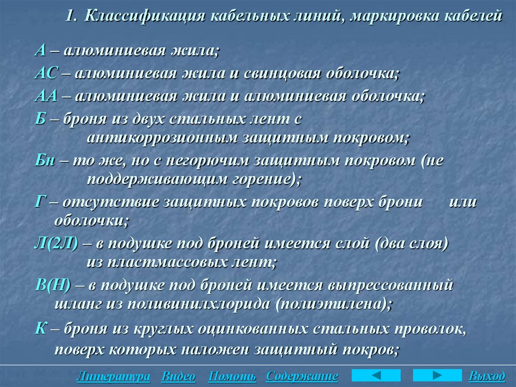 3. 1. Классификация кабельных линий, маркировка кабелей