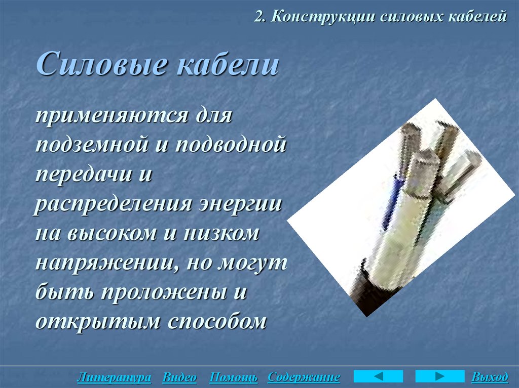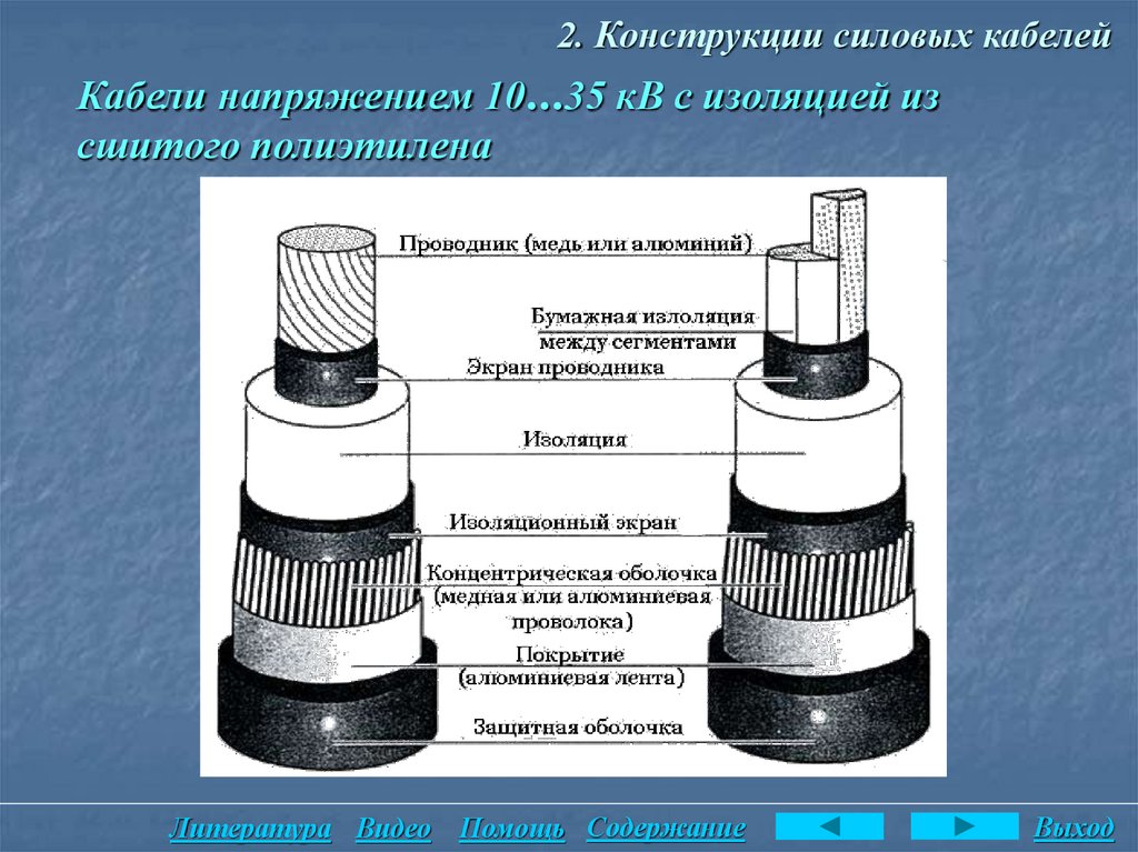 2. Конструкции силовых кабелейКабель высоковольтный в изоляции