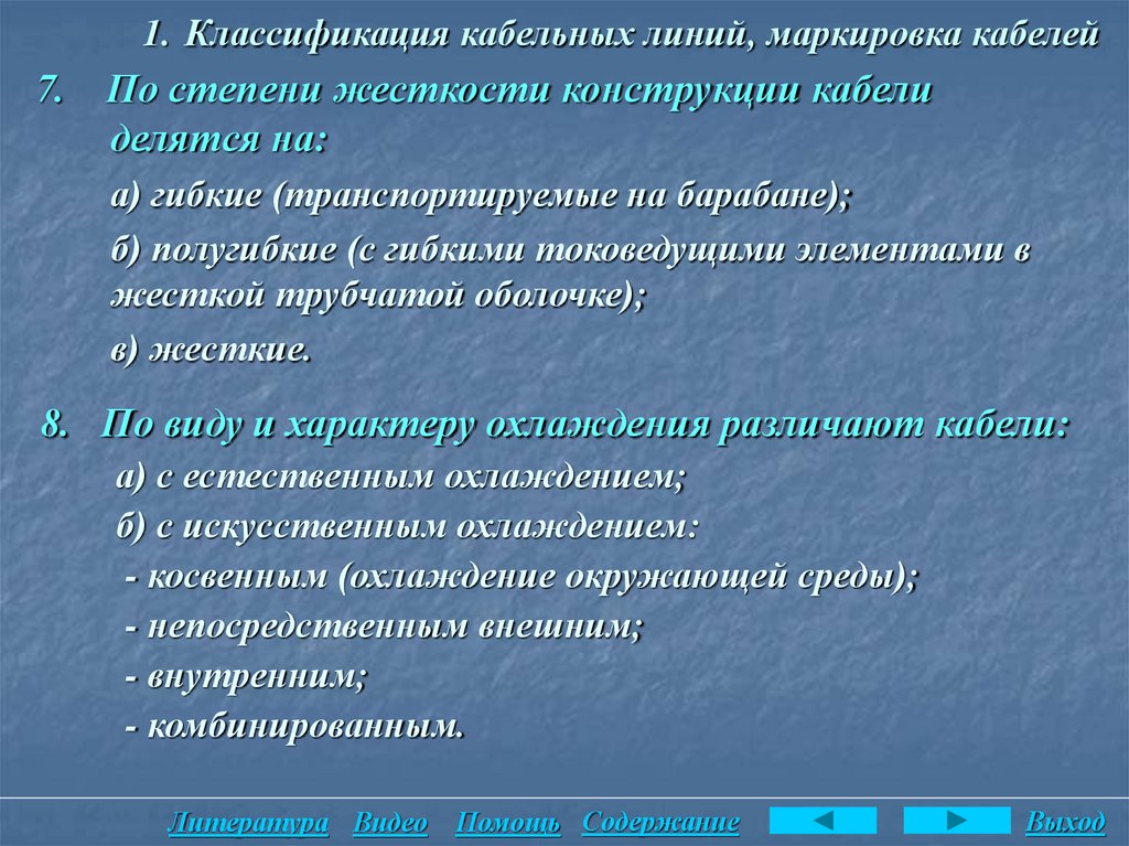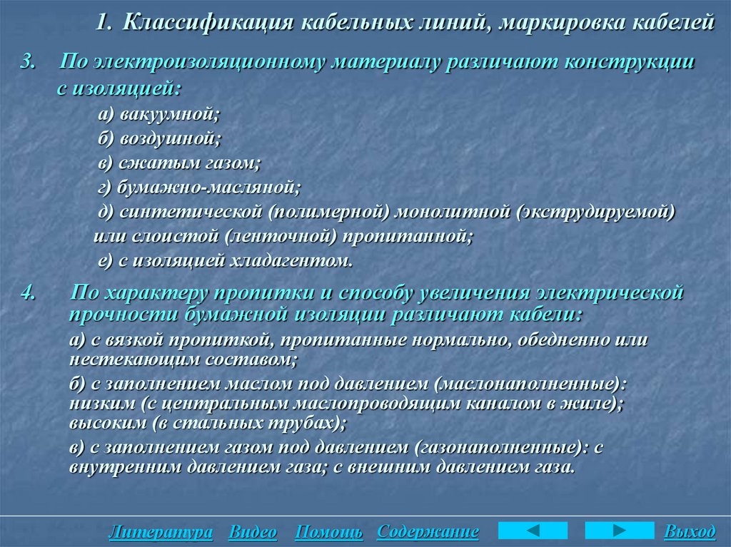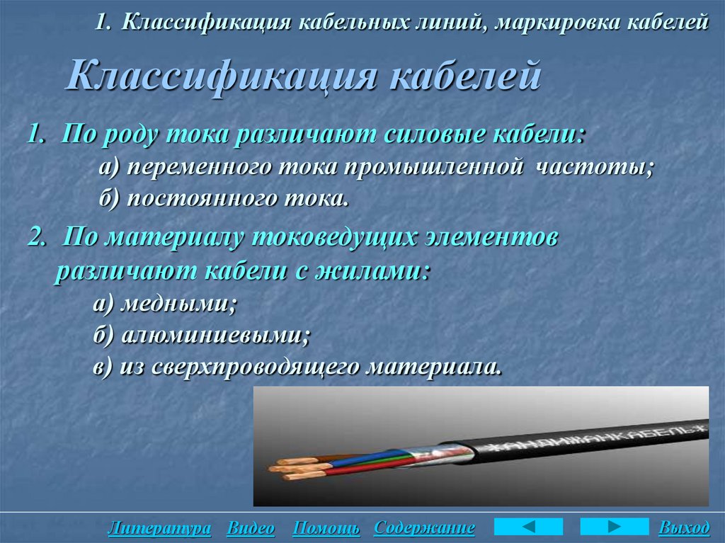 1. Классификация кабельных линий, маркировка кабелей2. Конструкции силовых кабелей