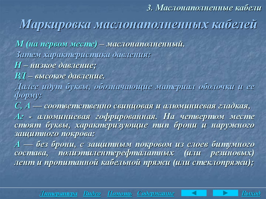 3. Маслонаполненные кабелиМаркировка маслонаполненных кабелей