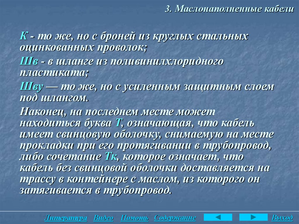 3. Маслонаполненные кабелиК - то же, но с броней из круглых стальных
