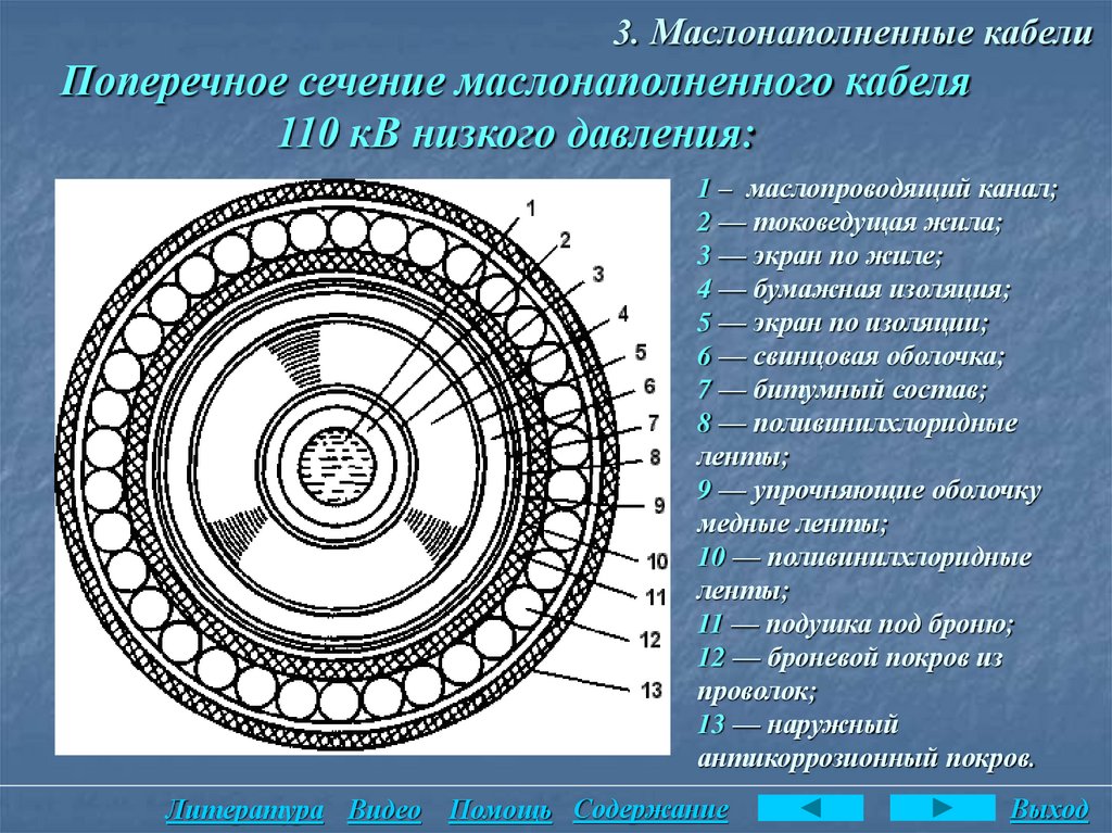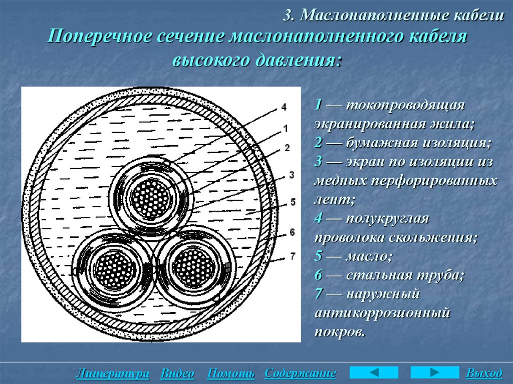 3. Маслонаполненные кабелиПоперечное сечение маслонаполненного кабеля