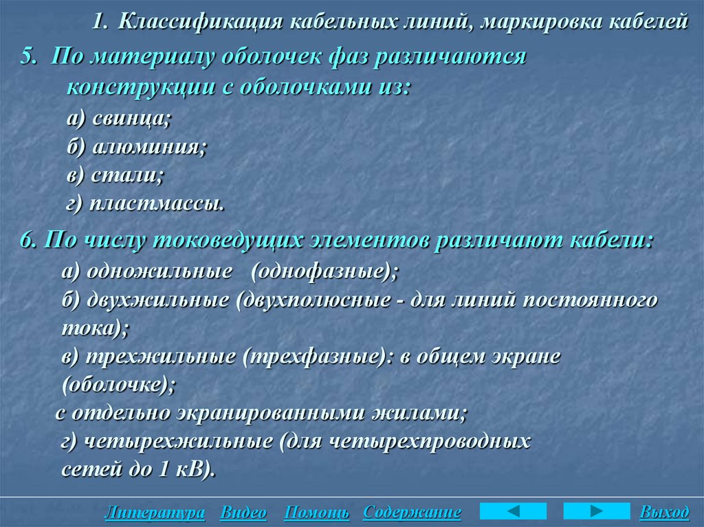 1. Классификация кабельных линий, маркировка кабелей5. По материалу оболочек фаз различаются