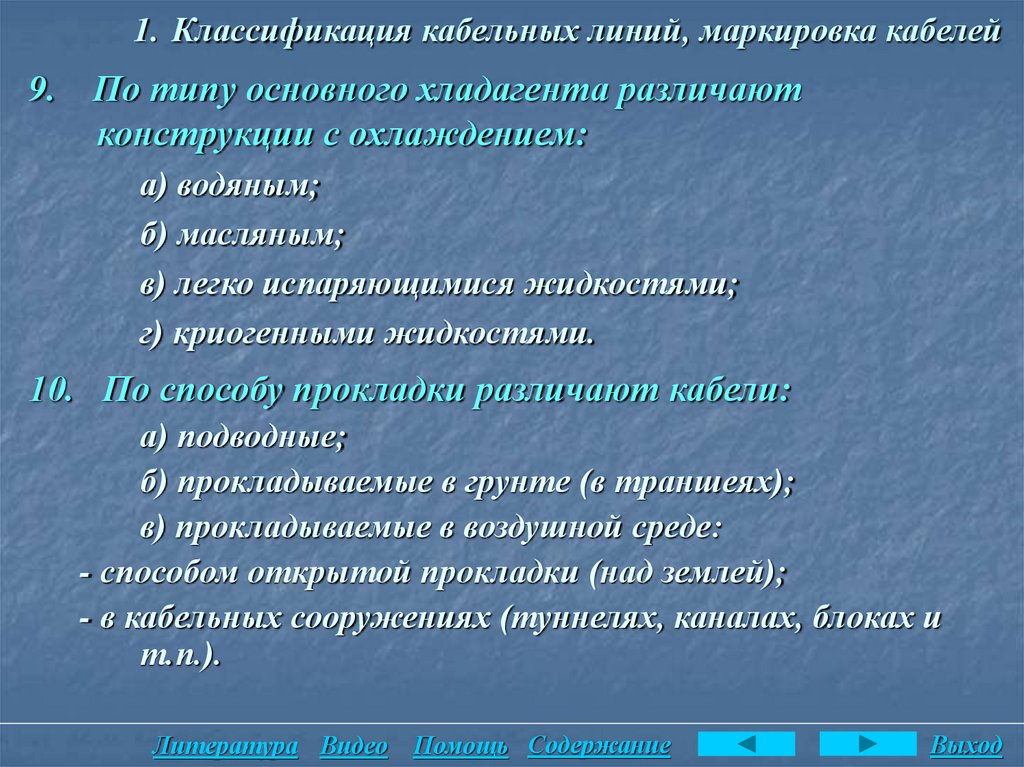 1. Классификация кабельных линий, маркировка кабелей9. По типу основного хладагента различают