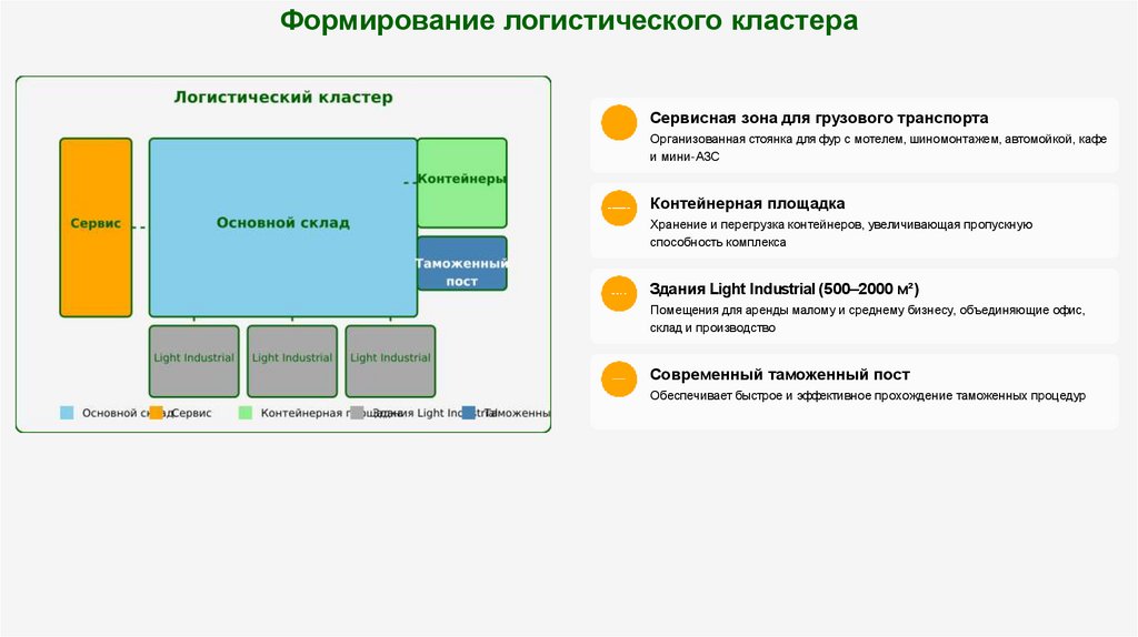 Формирование логистического кластераСервисная зона для грузового транспорта