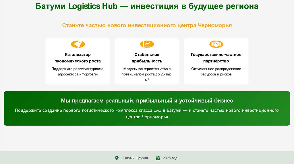 Поддержите создание первого логистического комплекса класса «А» в Батуми — и станьте частью нового инвестиционного