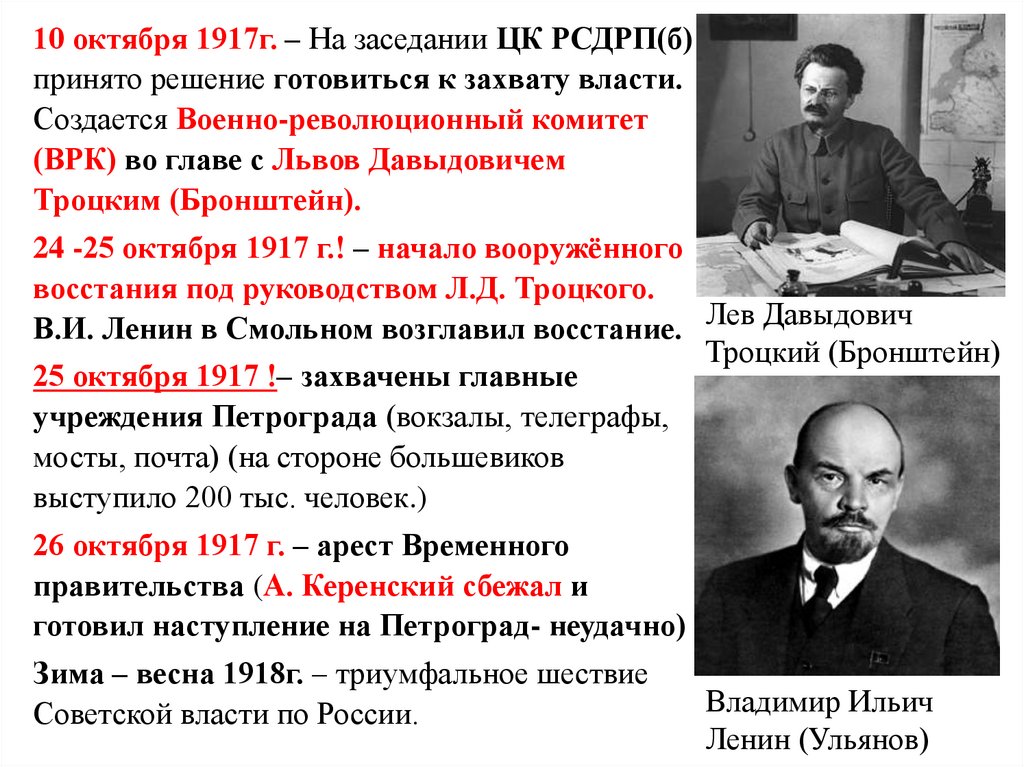 10 октября 1917г. – На заседании ЦК РСДРП(б)принято решение готовиться к захвату власти.