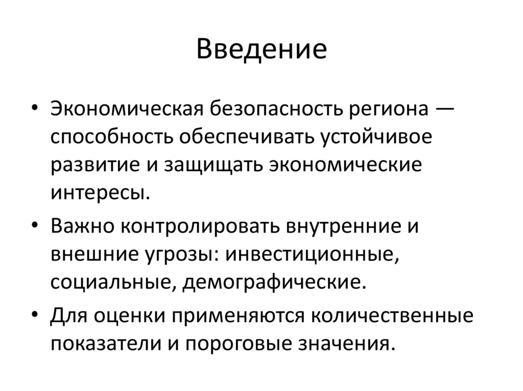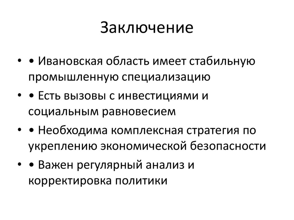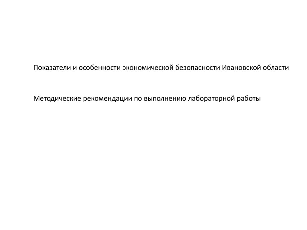 Показатели и особенности экономической безопасности Ивановской областиМетодические рекомендации по выполнению лабораторной работы