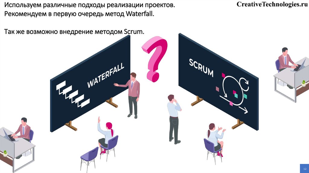 Используем различные подходы реализации проектов.Рекомендуем в первую очередь метод Waterfall.