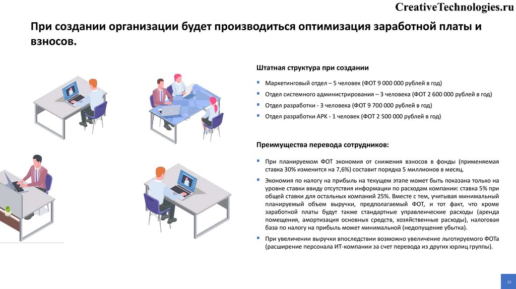 Отдел системного администрирования – 3 человека (ФОТ 2 600 000 рублей в год)