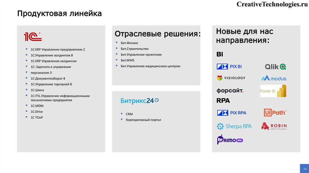 Продуктовая линейкаОтраслевые решения: