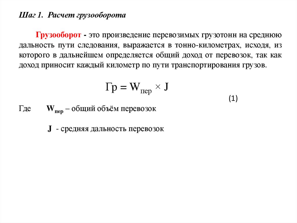 Шаг 1. Расчет грузооборотаГрузооборот - это произведение перевозимых грузотонн на среднюю