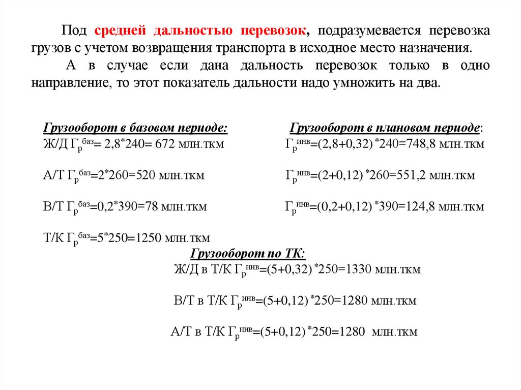 Под средней дальностью перевозок, подразумевается перевозкагрузов с учетом возвращения транспорта в исходное место назначения.
