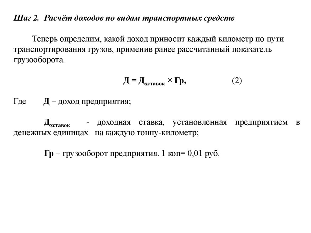 которого в дальнейшем определяется общий доход от перевозок, так как