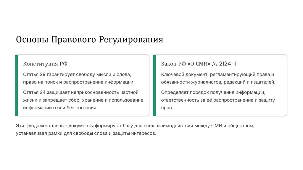 Эти фундаментальные документы формируют базу для всех взаимодействий между СМИ и обществом,