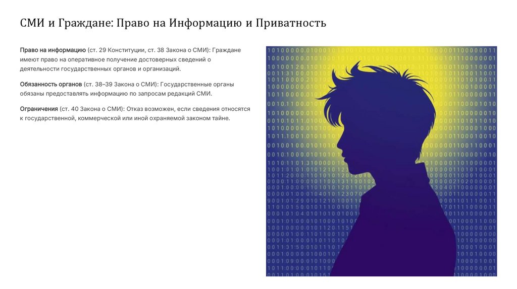 СМИ и Граждане: Право на Информацию и ПриватностьПраво на информацию (ст. 29 Конституции, ст. 38 Закона о СМИ): Граждане