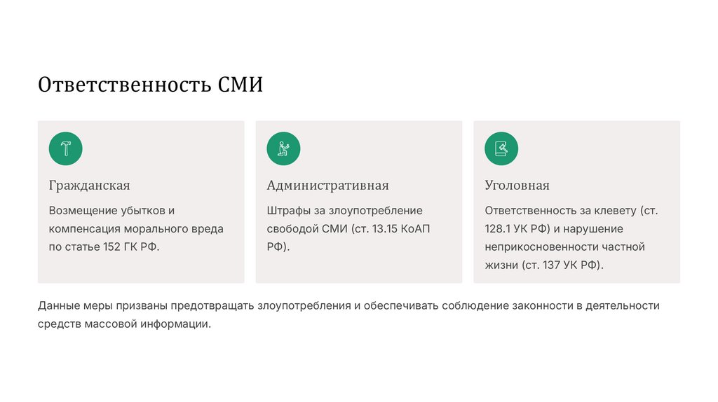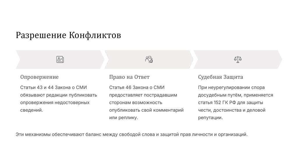 Эти механизмы обеспечивают баланс между свободой слова и защитой прав личности и организаций.