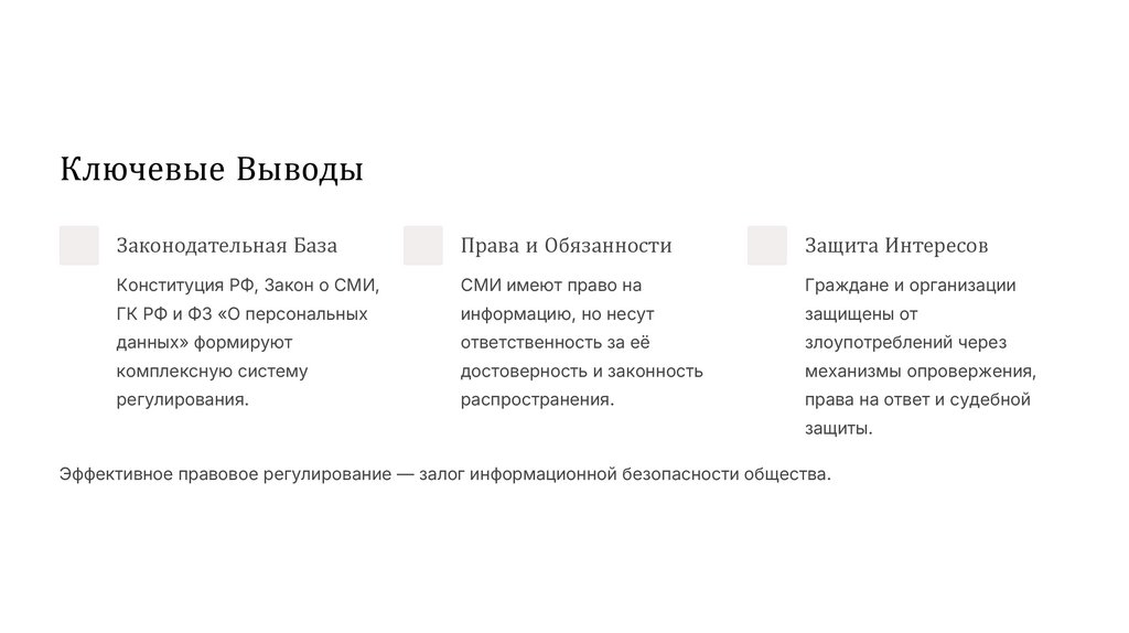 Эффективное правовое регулирование — залог информационной безопасности общества.