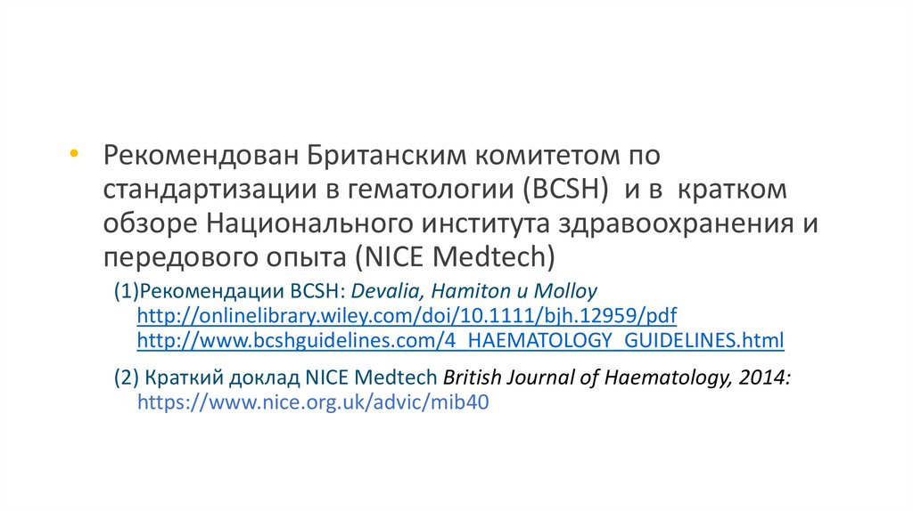 • Рекомендован Британским комитетом постандартизации в гематологии (BCSH) и в кратком