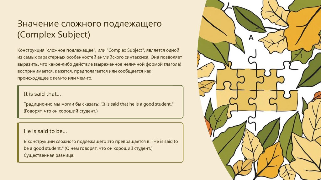 Конструкция "сложное подлежащее", или "Complex Subject", является одной