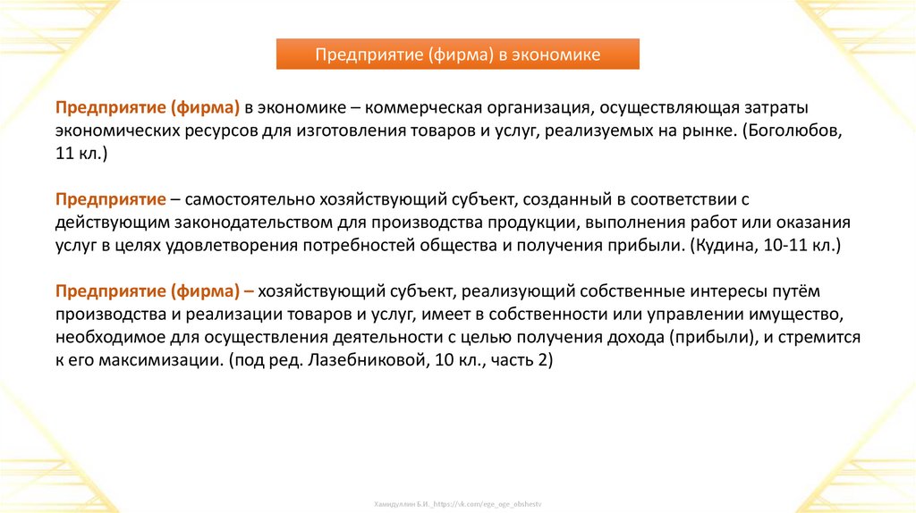 1. ЕГЭ_2.8 Предприятие (фирма) в экономике. Цели предприятия. Экономические цели фирмы. Производство. Факторы производства и