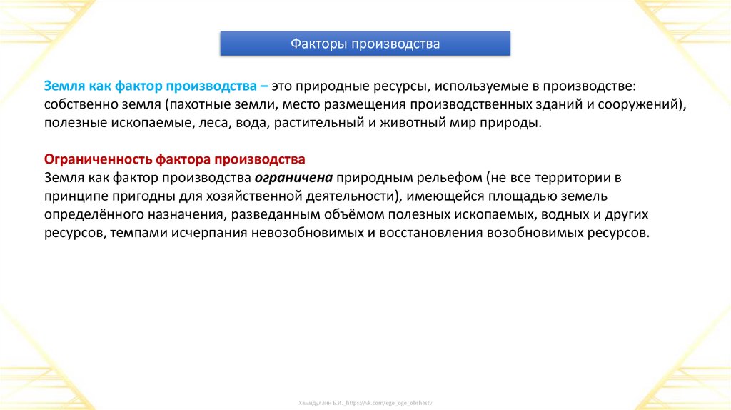 Факторы производстваФакторы производства – основные ресурсы, используемые в процессе производства.