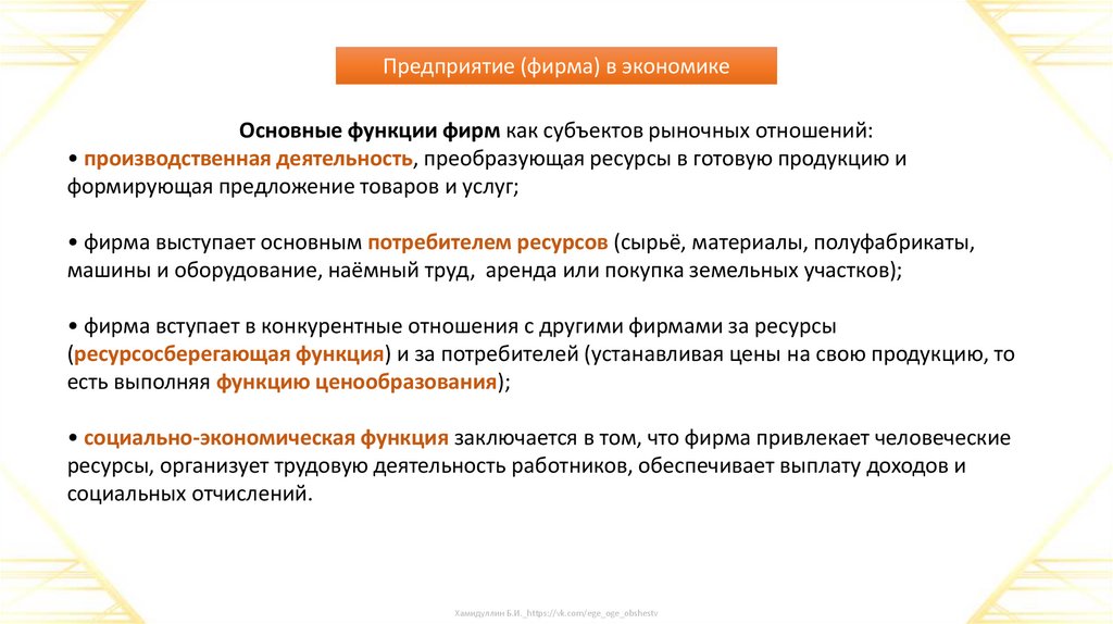 Предприятие (фирма) в экономикеОсновные функции фирм как субъектов рыночных отношений: