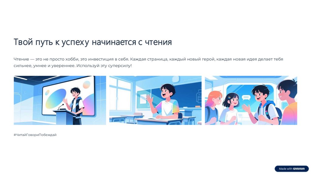 Твой путь к успех у начинается с чтенияЧтение — это не просто хобби, это инвестиция в себя. Каждая страница, каждый новый герой, каждая новая идея делает тебя