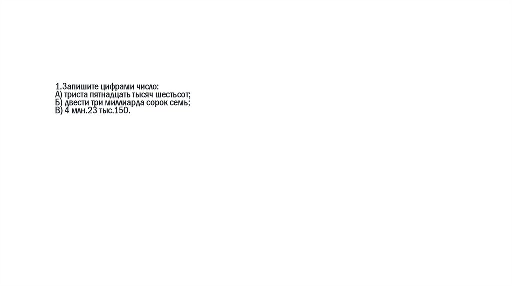 1.Запишите цифрами число:А) триста пятнадцать тысяч шестьсот;